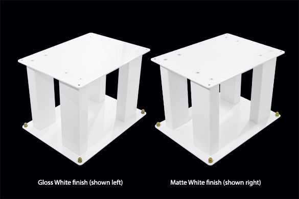 Fully adjustable and lockable spikes are supplied for the bottom plates of the stands. We recommend using four small, peas sized balls of Blu-Tack, placed in each corner of the upper surface of the top plate for securing the loudspeaker to the stand. This is, in our experience, by far the best method to use.